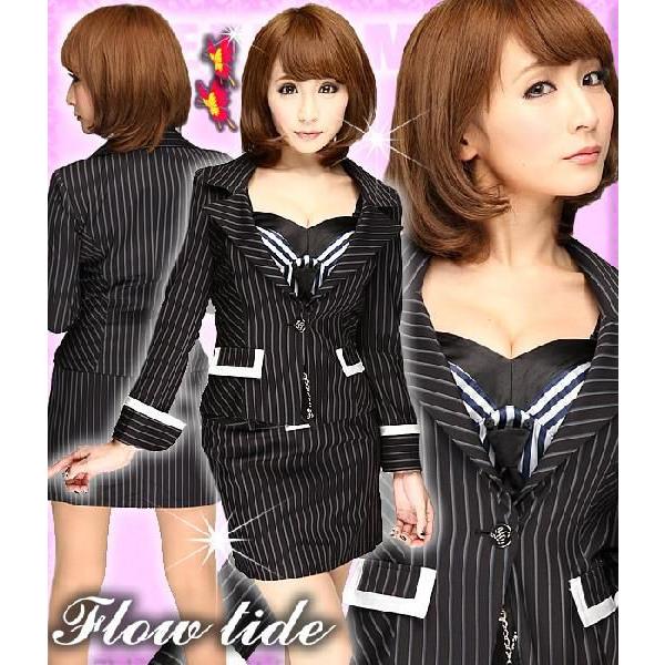 キャバ嬢 スーツ キャバ スーツ Flowtide フロータイド マイクロミニスーツ レディース ジャケット インナー スカート 3点セット ストライプ柄を組み合わせたスレンダースタイル インナーパンツ付きスーツセ F 611 Ar Rv N S 小さいサイズ M キャバ